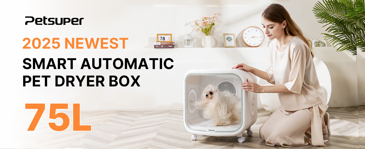 75L Large Automatic Pet Dryer Box for Cats & Small Dogs With App-Controlled| Ultra-Quiet Hands-Free Drying with Smart Safe Temperature & Overheat Protection - Ideal for Multi-Pet Homes