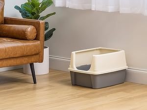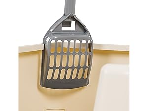 Designed as a high sided litter box, it effectively keeps litter confined, reducing mess on your floor. This litter box is ideal for indoor cats, accommodating both large and small felines. Its high wall design also minimizes litter scatter. The front opening is lowered for seamless access, making it suitable even for older or senior cats. Crafted from durable, BPA-free, and recyclable plastic, it's designed to last. It also includes a convenient cat litter scoop that stores directly on the cat box for easy access.